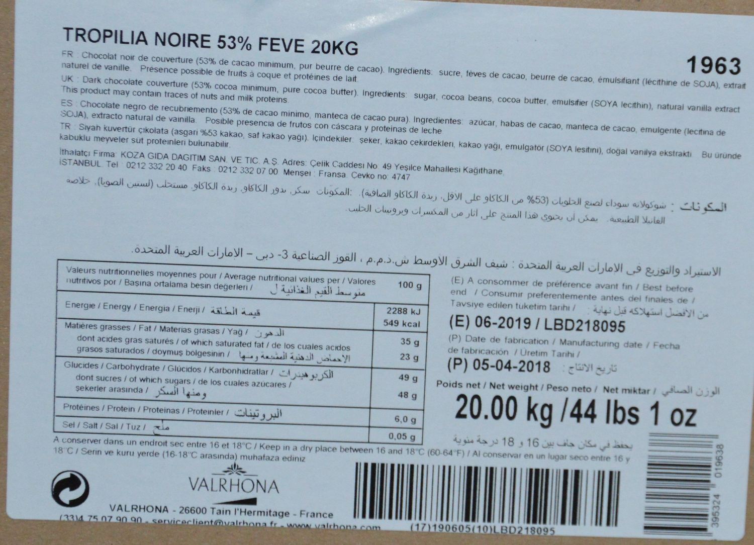 Tropilia noir 53% carton de 20KG